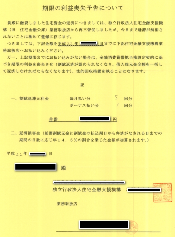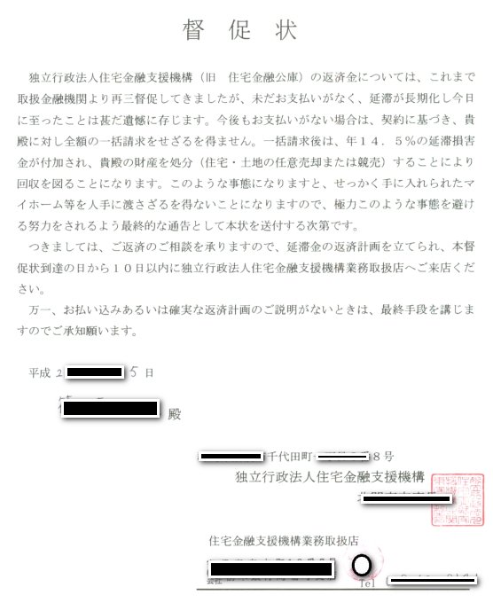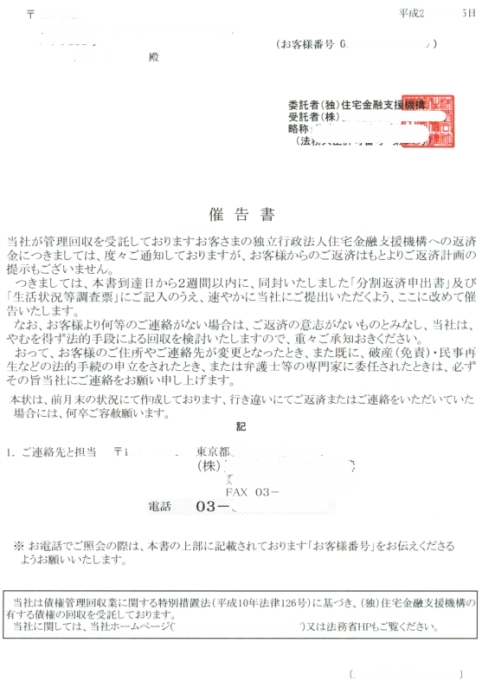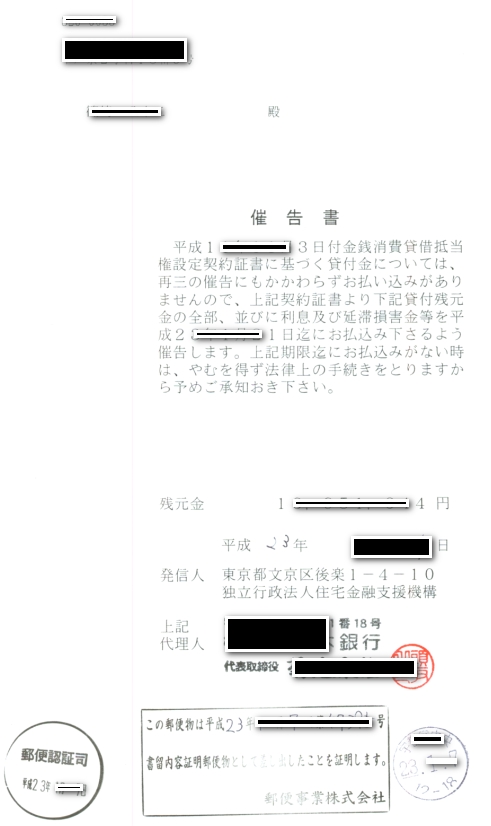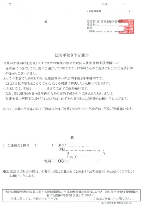 (サービサーからの催告書・法的予告通知 クリックすると大きい画像が表示されます)