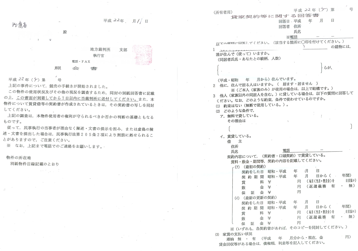 新聞・インターネットなどで公表される為、近所に競売物件になっていることが知られます。また(競売のプロ)と称する人物や不動産業者がご近所に聞き込みに回る事もあります。